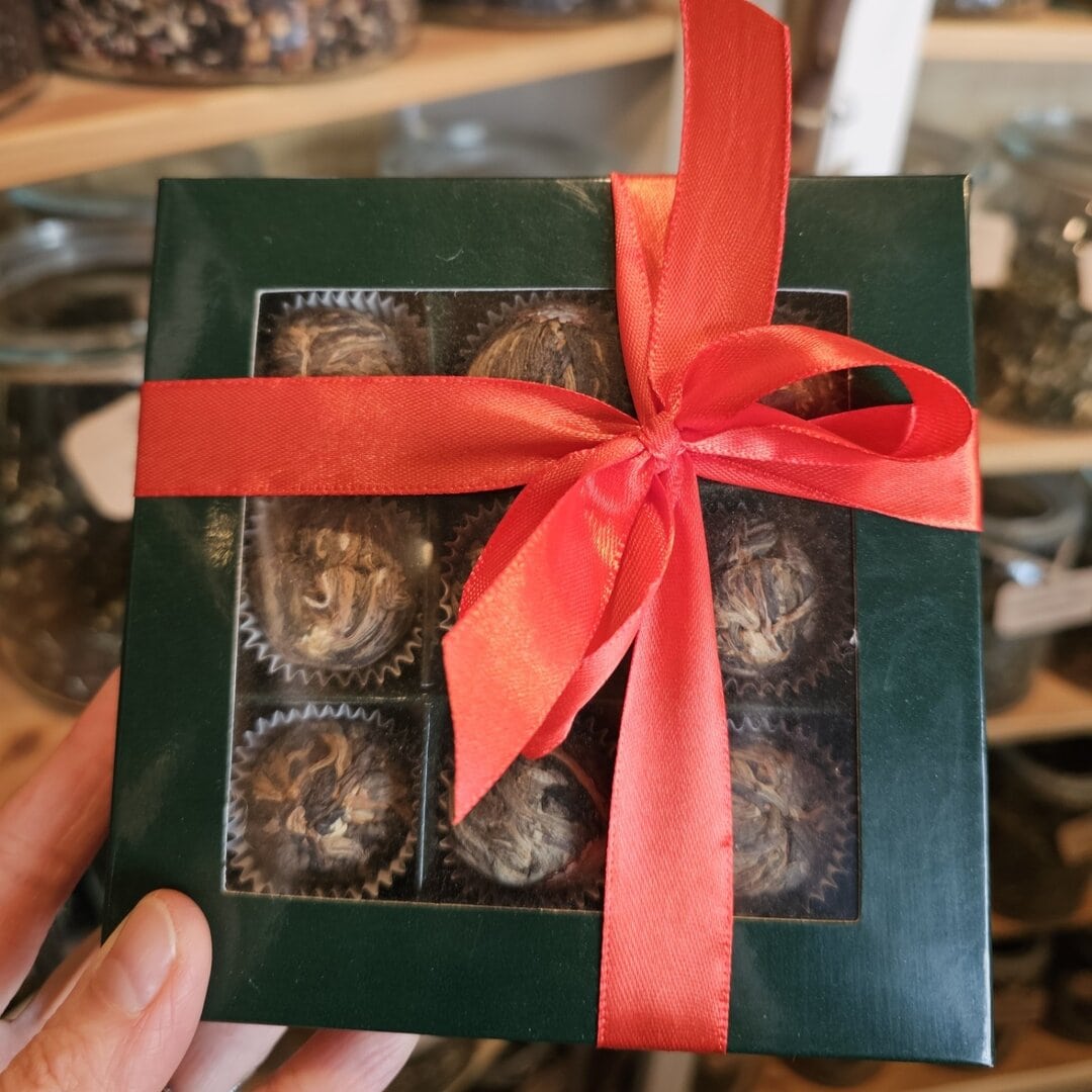 To elegancki zestaw, w którym zamiast czekoladek znajduje się 9 kul herbat kwitnących – gotowych do zaparzenia i zachwycenia. Możesz samodzielnie wybrać warianty lub zostawić to nam – skomponujemy zestaw tak, aby był różnorodny i efektowny.