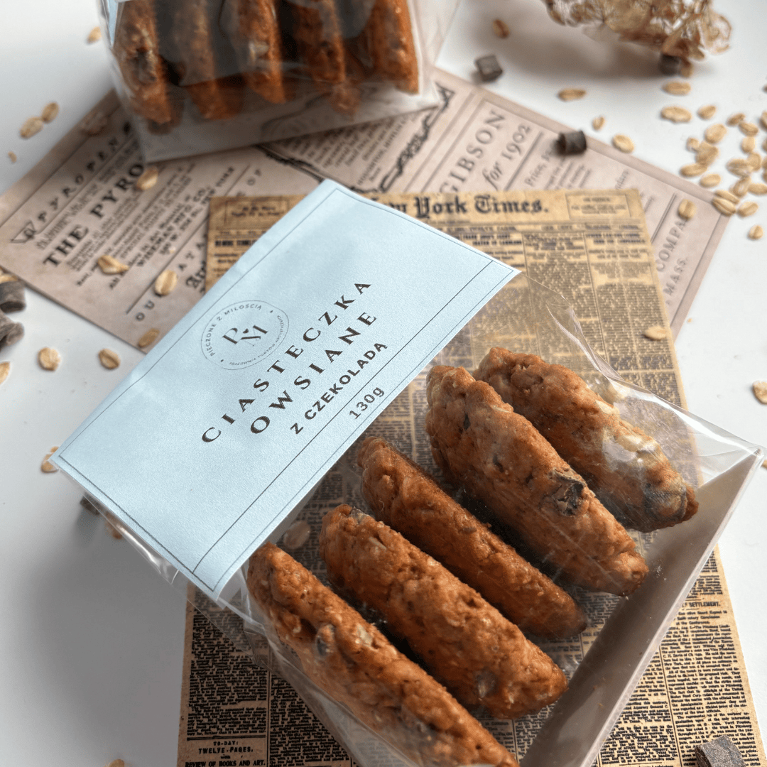 Konkretne, pełne płatków owsianych, lekko maślane, z dodatkami. Proste, uczciwe i bardzo lubiane – idealne do herbaty, kawy lub jako słodka przekąska w ciągu dnia.