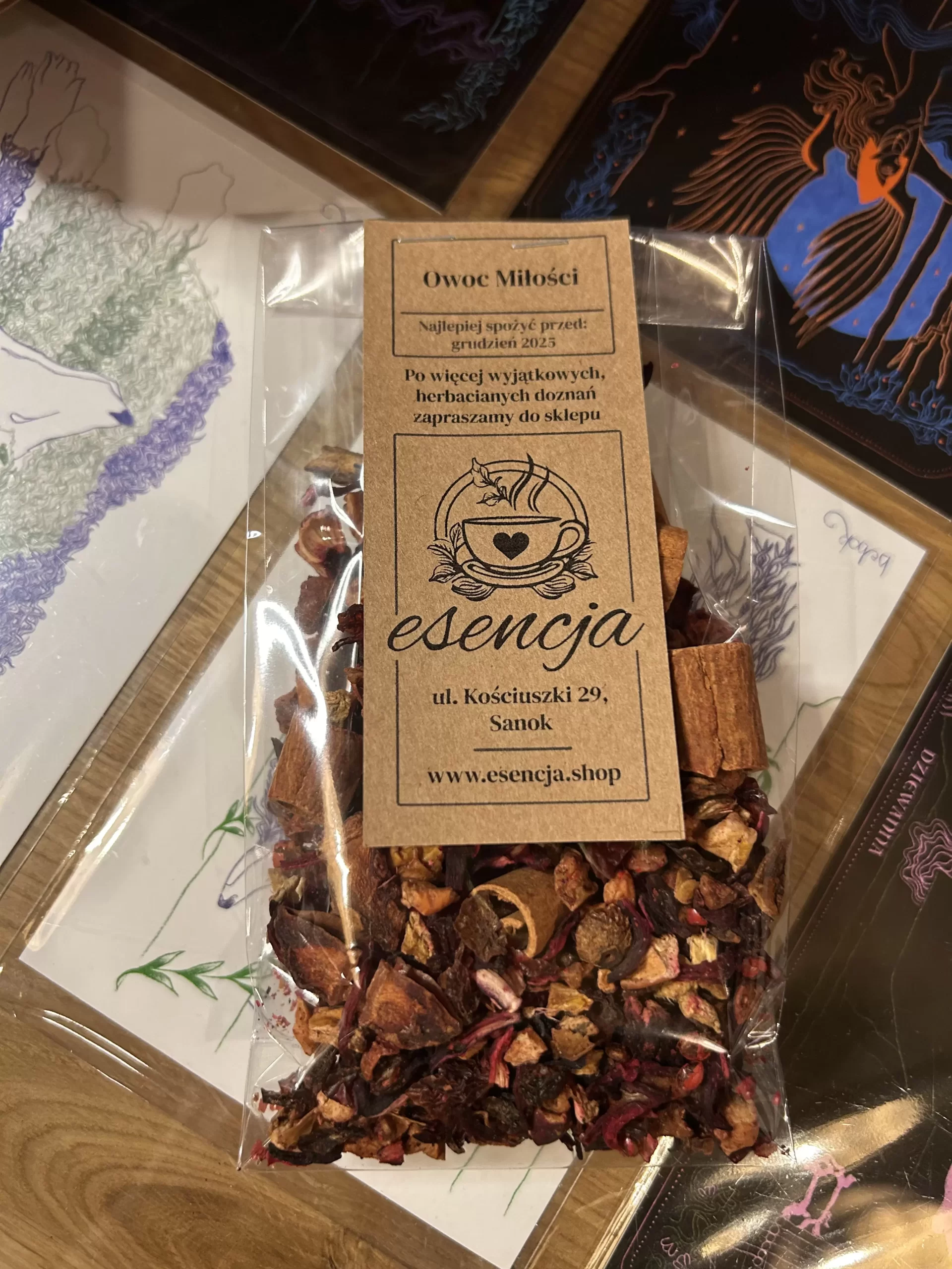UWAGA! Przed wysłaniem – w zależności od wyboru dokonanego przez Klienta – nasz susz jest pakowany do papierowych lub przezroczystych torebek. Warto pamiętać, że różne susze mogą mieć różną objętość, dlatego poziom napełnienia opakowania może nieco się różnić, mimo identycznej wagi (zwróć uwagę na tę różnicę porównując nasze zdjęcia 3 różnych herbat, zapakowanych w transparentne torebki – Sencha Sakura, Owoc Miłości i Pomarańczowe Ciasteczko). Z tego powodu zdjęcia suszu w opakowaniach należy traktować jedynie jako poglądowe.